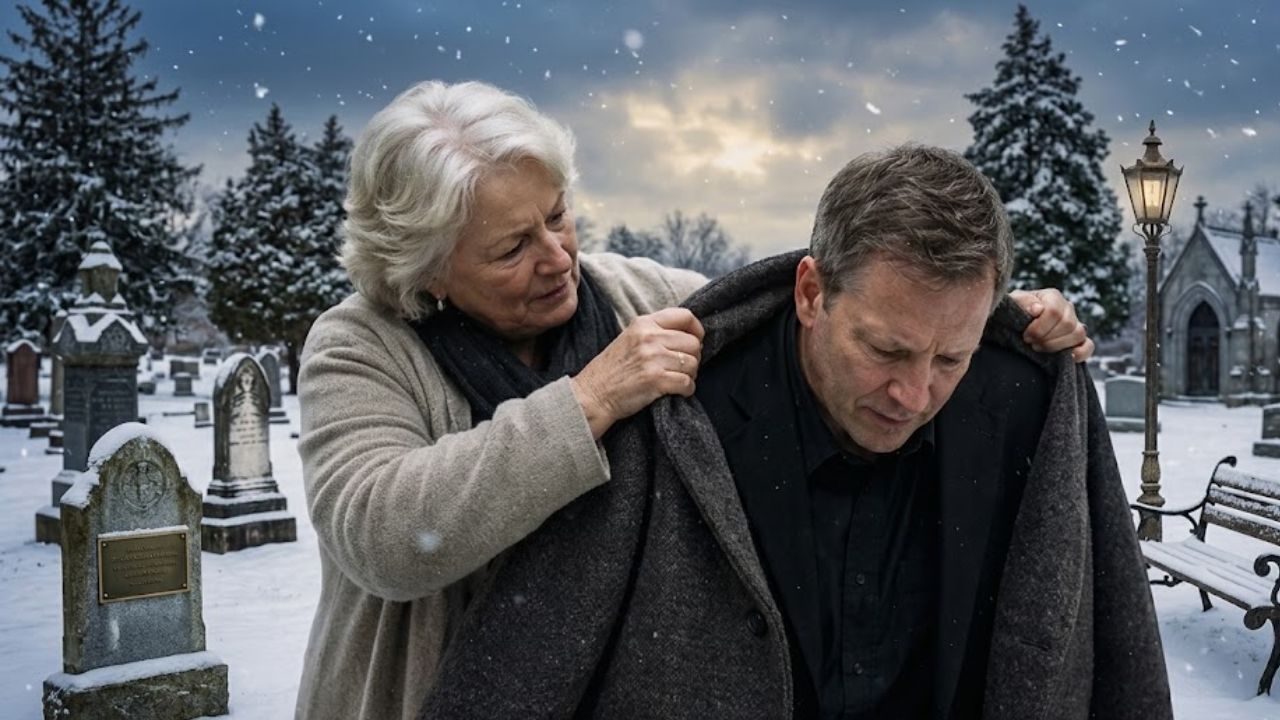 After my son’s funeral, I stood outside in the cold, unable to feel anything. An elderly woman approached me quietly, took off her warm coat, and insisted I take it. Later, I found out she had passed away days earlier. What she gave me was not just warmth, but a final act of kindness that stayed with me forever.