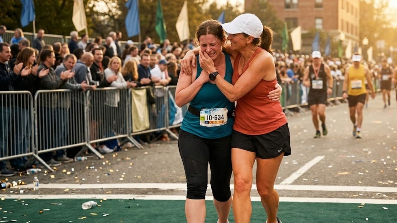 We crossed the finish line together. She hugged me and then walked away into the crowd before I got her name. I have run six marathons since. I slow down for struggling runners at mile twenty three every single time because a stranger did it for me once and I know exactly what those three miles feel like when someone decides to stay.