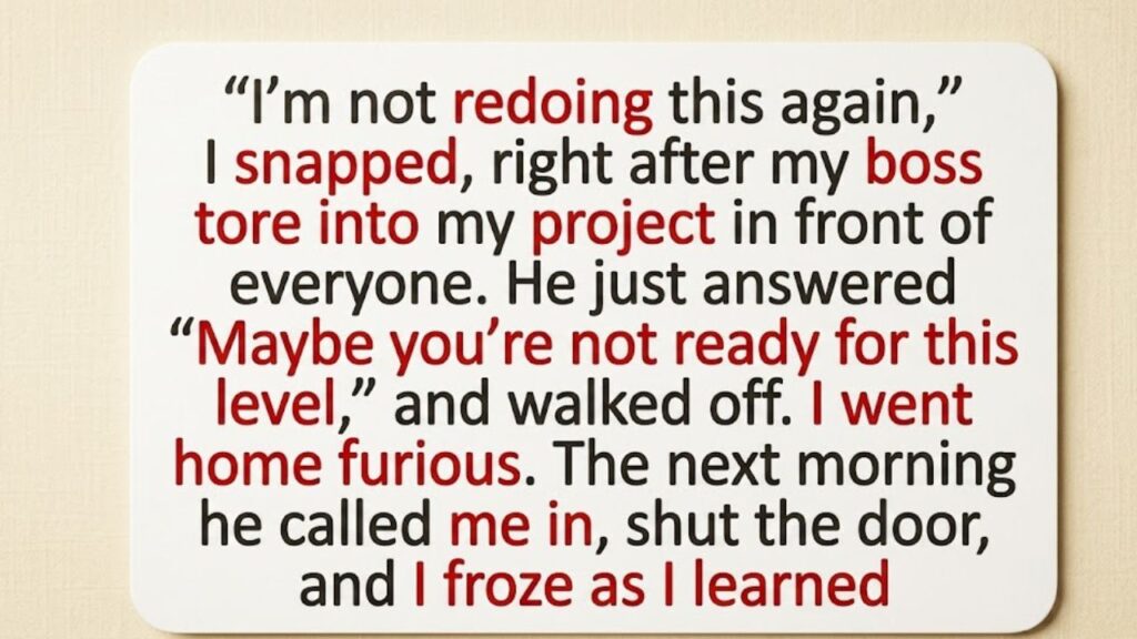 “I’m not doing this again,” I said sharply after my manager criticized my work in front of everyone. He looked at me calmly and replied, “Then maybe you’re not ready for this responsibility,” before walking away. I went home upset, convinced I was about to lose my job. The next day, he asked me to come in and closed the door. I expected the worst, but what he said surprised me. He explained, “I’ve already told them you’re the one I believe in, but you need to be prepared.” He even showed feedback from higher-ups and said he’d rather seem harsh than let me fail publicly. I didn’t expect that kind of support.