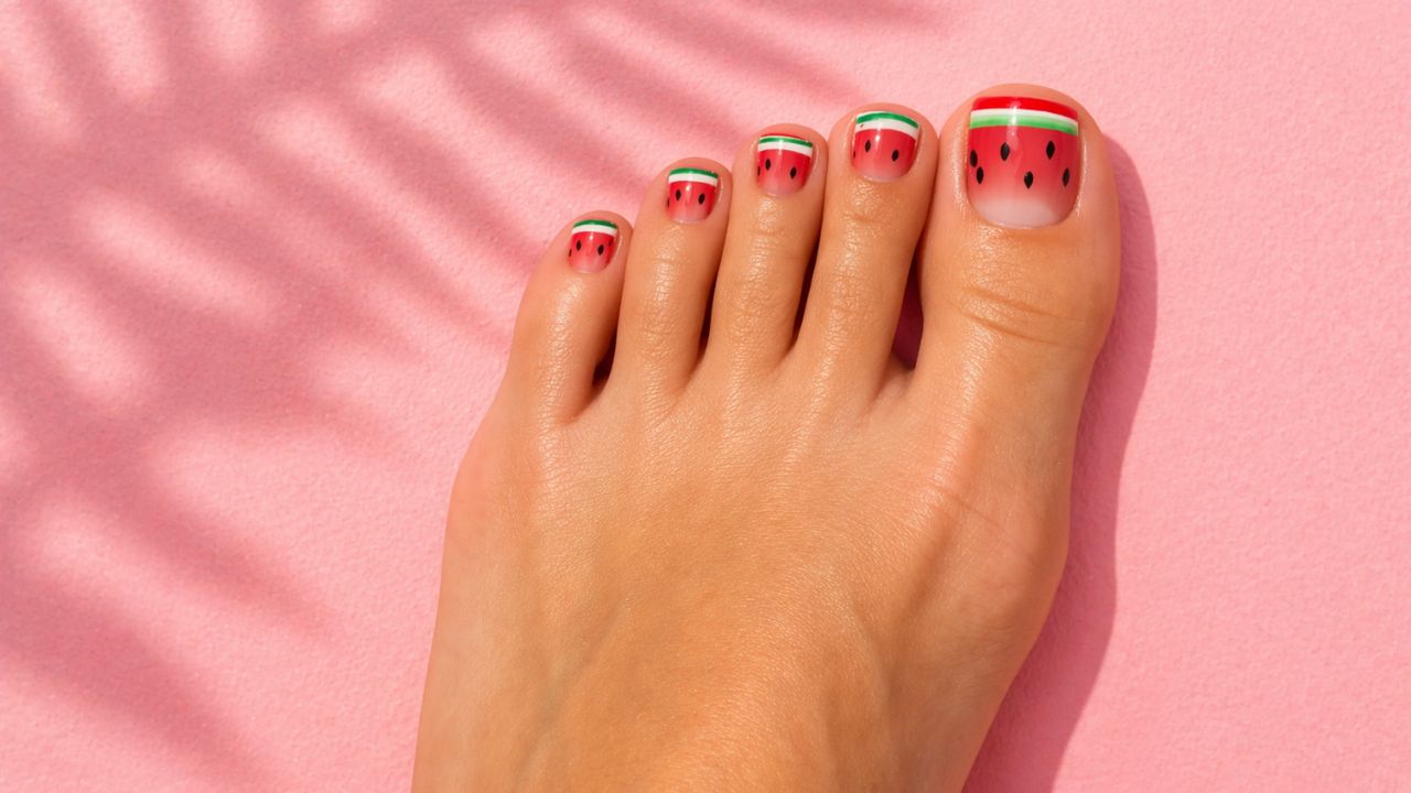 Sheer watermelon is a fun and juicy twist on the jelly nail trend that is taking over pedicures this summer. Its clear, see-through finish makes nails look fresh and dewy, like your favorite summer fruit, but in a beauty way.